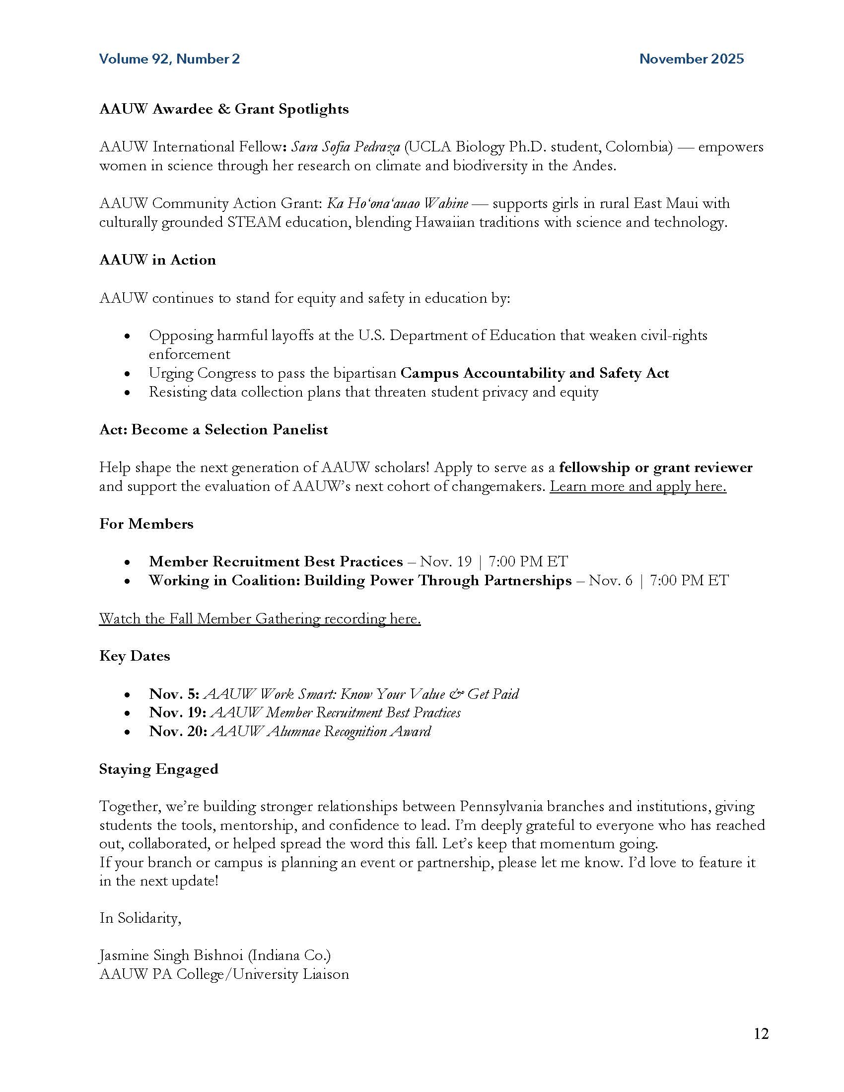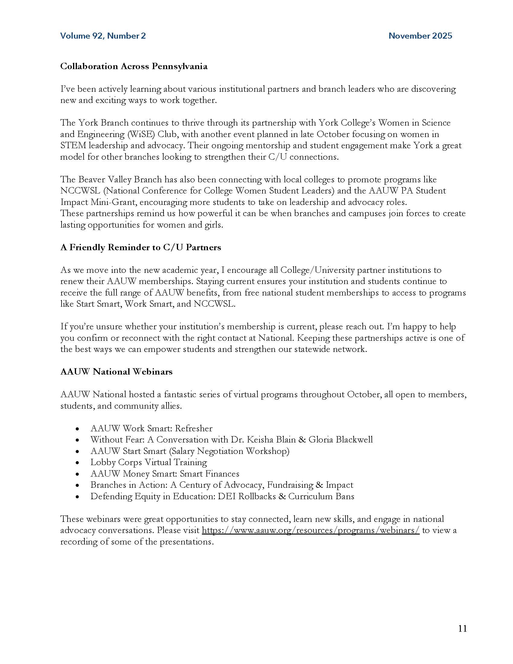 2023-2025 AAUW Pennsylvania Officer Candidates